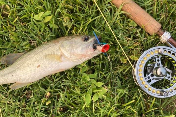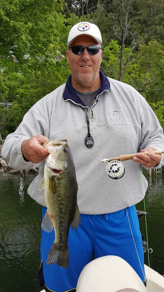 Graham from GA with a beautiful Black Bass caught on a #6 Double Barrell in my frog color. Here’s proof that small flies can catch big fish!