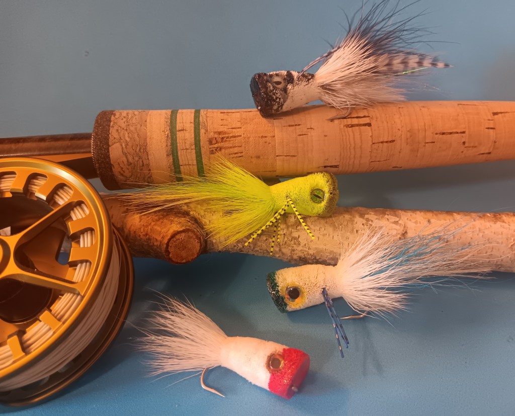This set includes 4 premium, high quality, deer hair bugz. 1 diver and three poppers. Two poppers are a replica of Dave Whitlock’s famous Fruit Cocktail bass bugs. Hook size proportionate to popper head which will ensure a good hook set.